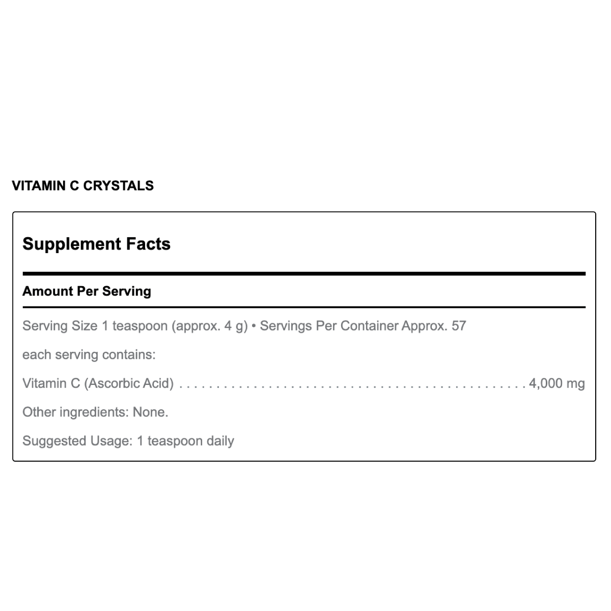 Unless you're eating the recommended nine servings of fruit and vegetables every day you may not be supplying your body with enough Vitamin C. Making things worse, many low-quality sources of ascorbic acid are poorly absorbed and provide insufficient amounts to be effective. Pure Vitamin C is a high potency source of crystalized Vitamin C which dissolves easily in water and is easily absorbed in the body. Pure Vitamin C is an excellent source of this powerful antioxidant which supports immune health, aids collagen synthesis, and repairs skin.