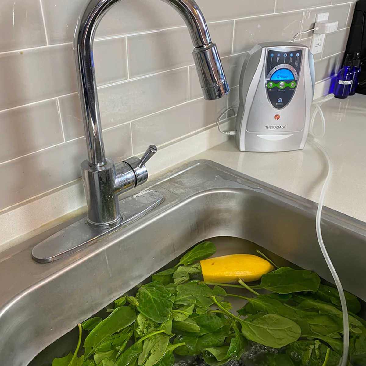 The TheraO3 Bubbler is the latest addition to the Therasage line of personal and affordable ozone devices. The bubbler offers many features and applications to Bring O3 - ozone or extra oxygen into our bodies. Oxygen therapy has been used for decades to support immune function, fight off the negative effects of microbial attacks, like viruses and foreign bacteria, and combat oxidative stress. This unique device, with its special tungsten mechanism, can be used to sanitize all of your food sources by simply bubbling the low Gamma O3 into your kitchen sink filled with tap water. Within minutes your tap water transforms into a sanitation station and can sterilize and disinfect all forms of unhealthy foreign bacteria, viruses, and parasites.
